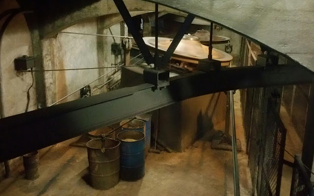 At the "barn" I learned that the entire system is powered by these huge pulleys. See the names of the lines on that beam above the pulleys? Each line has miles of cable running under the streets, but they all lead back to this building where the cars are stored at night, and maintenance is done.